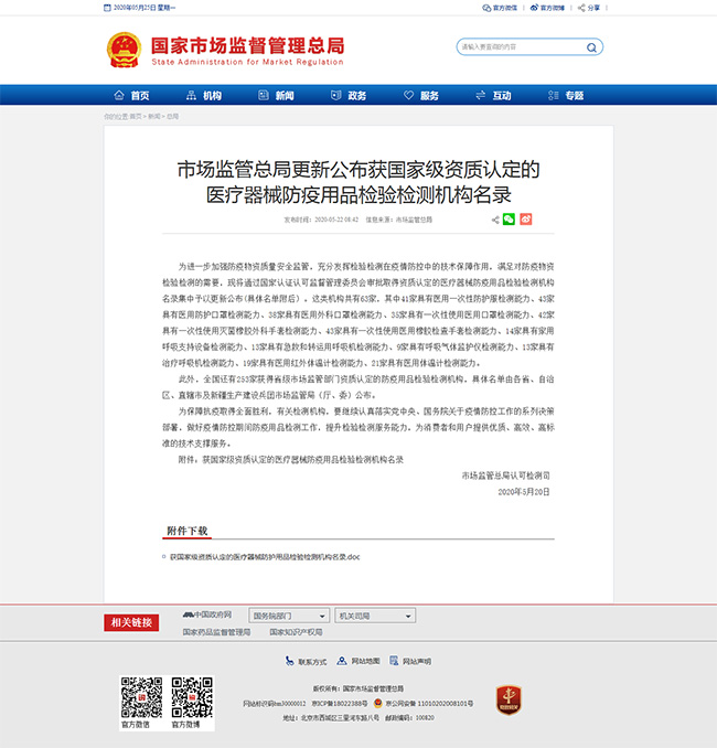 On May 22, the State Administration for Market Regulation updated and announced the list of 63 inspection and testing agencies for medical devices and pandemic prevention articles certified by state-level qualifications. A holding subsidiary of GRG Test - the Guangzhou and Wuxi branches of FG Test Co., Ltd. (hereinafter referred to as FG Test), have entered the list and have the testing capability of medical infrared thermometers and medical thermometers.