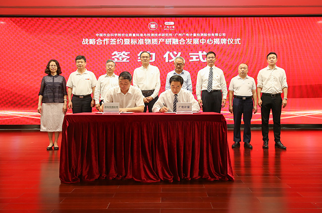 On October 12, Guangzhou GRG Metrology & Test Co., Ltd. (hereinafter referred to as GRGTEST, stock code: 002967) signed a strategic cooperation agreement with the Institute of Quality Standard and Testing Technology for Agro-Products of the Chinese Academy of Agricultural Sciences (hereinafter referred to as IQSTAP of ACCA) and held the opening ceremony of the "Reference Material Production-Research Integration Development Center". This strategic signing between GRGTEST and IQSTAP of ACCA creates a good demonstration of "Production-Research Integration" between state-owned market-oriented technical service agencies and national institutes. It also marks the formal entry of GRGTEST into the reference material market and its extension to the upstream of the inspection and testing industrial chain. And it enhances the core competitiveness of enterprise through concentric and diversified development, and gives full play to the industrial convergence effect to better serve the construction of great power of quality. This is also GRGTEST's another expansion of its business landscape following the layout of EHS evaluation and consulting market.