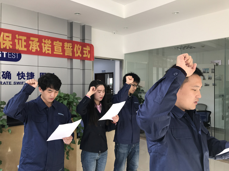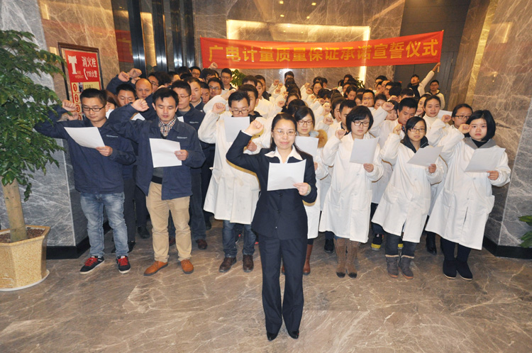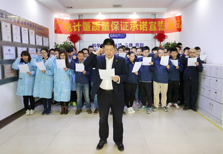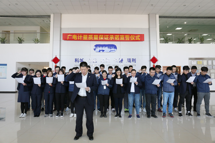 為強化全國一體化質量管控體系,堅守企業生存發展生命線,為產品質量安全保駕護航,同時在同行業、全社會喚起計量檢測機構、生產企業、社會公眾對真實數據、質量安全的重視,3月9日-17日,廣電計量在全國16大檢測基地相繼舉辦技術人員質量保證承諾宣誓儀式。他們舉起右手,緊握拳頭,齊聲用共同的誓詞向客戶、向社會、向自己作出鄭重承諾!
