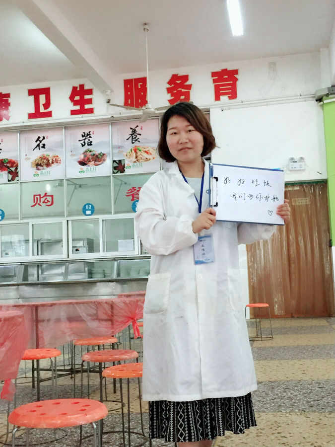 在某考場食堂,技術人員對食品原材料進行快速檢測,并逐一做好詳細記錄。