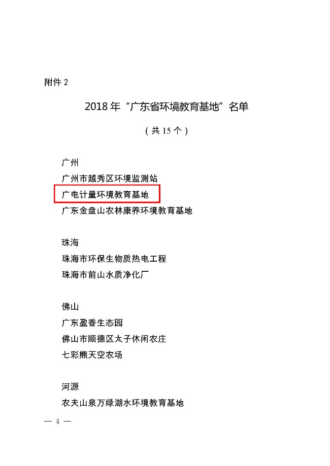 日前,廣東省生態環境廳公布了2018年廣東省環境教育基地名單,廣電計量在基地建設和環境宣傳教育方面表現突出,被評定為“廣東省環境教育基地”。