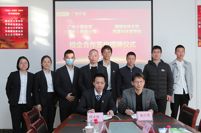1月28日,廣電計量檢測(福州)有限公司(簡稱福州廣電計量)與福建農林大學資源與環境學院(簡稱農大資源與環境學院)舉行校企戰略合作簽約授牌儀式。雙方圍繞實習教學基地共建、技術創新、人才培養、學科建設、“產學研”項目合作等方面進行了深入洽談,并簽署校企戰略合作協議。福州廣電計量獲授牌農大資源與環境學院“產學研合作基地”、“實習基地”。