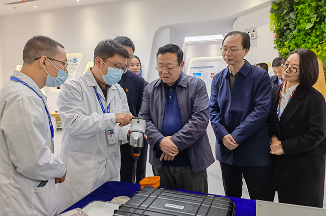 11月12日上午,湖南省生態環境廳黨組副書記、副廳長劉群一行就長沙環保設施開放單位向公眾開放的工作情況調研廣電計量檢測(湖南)有限公司(簡稱“湖南廣電計量”)。省生態環境廳宣傳教育處、省生態環境事務中心、長沙市生態環境局、長沙市生態環境局高新分局相關領導陪同。