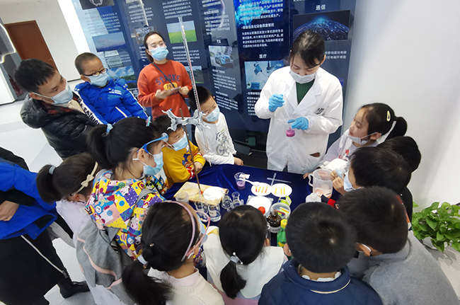 接著,懷揣著對科普小實驗的好奇心,學生家長一行來到了活動第二站——互動試驗區。