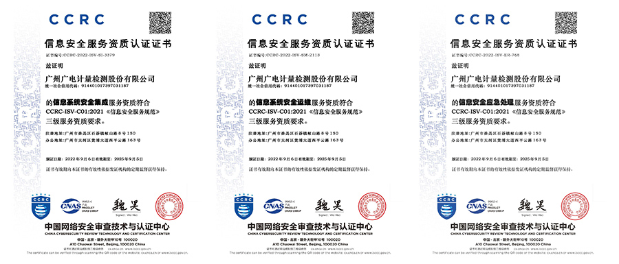 近日,廣電計量(002967.SZ)經(jīng)過嚴(yán)格審查,獲得中國網(wǎng)絡(luò)安全審查技術(shù)與認(rèn)證中心(CCRC)頒發(fā)的信息安全服務(wù)資質(zhì)認(rèn)證證書,包括信息系統(tǒng)安全集成、信息系統(tǒng)安全運維、信息安全應(yīng)急處理三項服務(wù)資質(zhì)。這是廣電計量繼今年獲得CCRC信息安全風(fēng)險評估服務(wù)等資質(zhì)后,再次實現(xiàn)重要突破,形成了信息安全領(lǐng)域“咨詢—運營—檢測—培訓(xùn)”全覆蓋的服務(wù)能力。