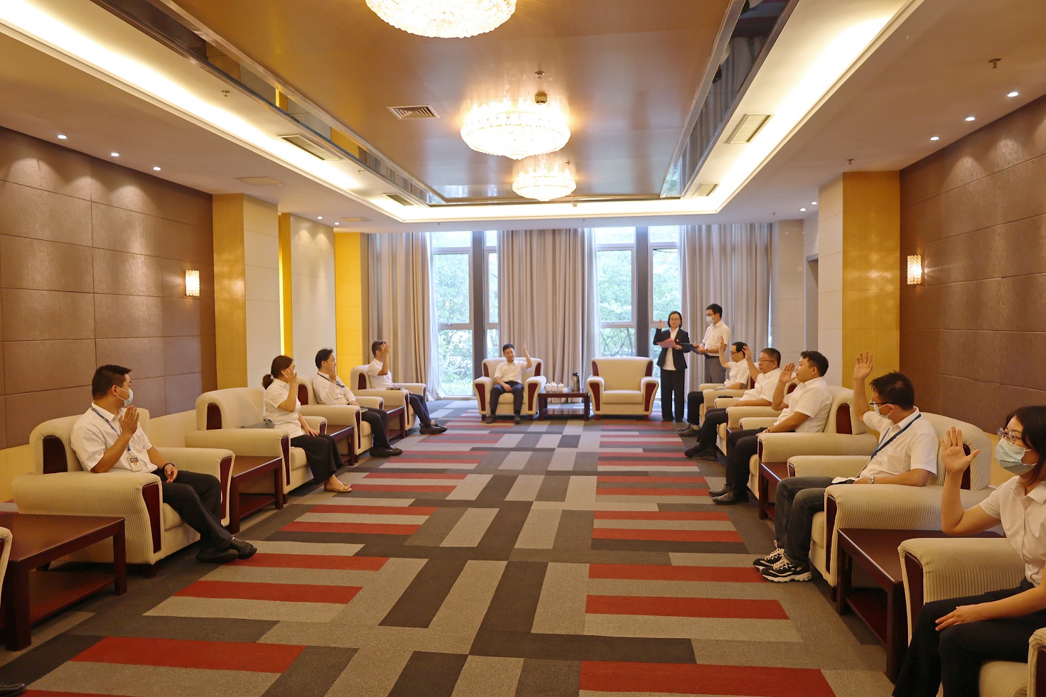 無錫市科協(xié)副主席王鎮(zhèn),國際部部長許娟;新吳區(qū)科協(xié)主席郭中華;無錫廣電計量總經(jīng)理儲程晨,副總經(jīng)理羅平、龍陽、許策、陳舒文出席會議。