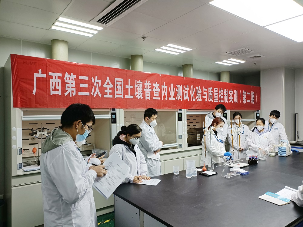 在接到試點縣的樣品檢測與分析任務(wù)后,南寧子公司生態(tài)環(huán)境檢測實驗室隨即制定了《第三次全國土壤普查試點項目土壤樣品檢測內(nèi)部質(zhì)量控制和保證方案》,從人、機、料、法、環(huán)、測等相關(guān)環(huán)節(jié)開展全流程、全環(huán)節(jié)、全方位的質(zhì)控管理。隨后,實驗室安排14名人員參加2022年廣西第三次土壤普查內(nèi)業(yè)測試化驗與質(zhì)量控制培訓(xùn)班,所有人員均通過理論及實操考核,并順利取得培訓(xùn)結(jié)業(yè)證書。