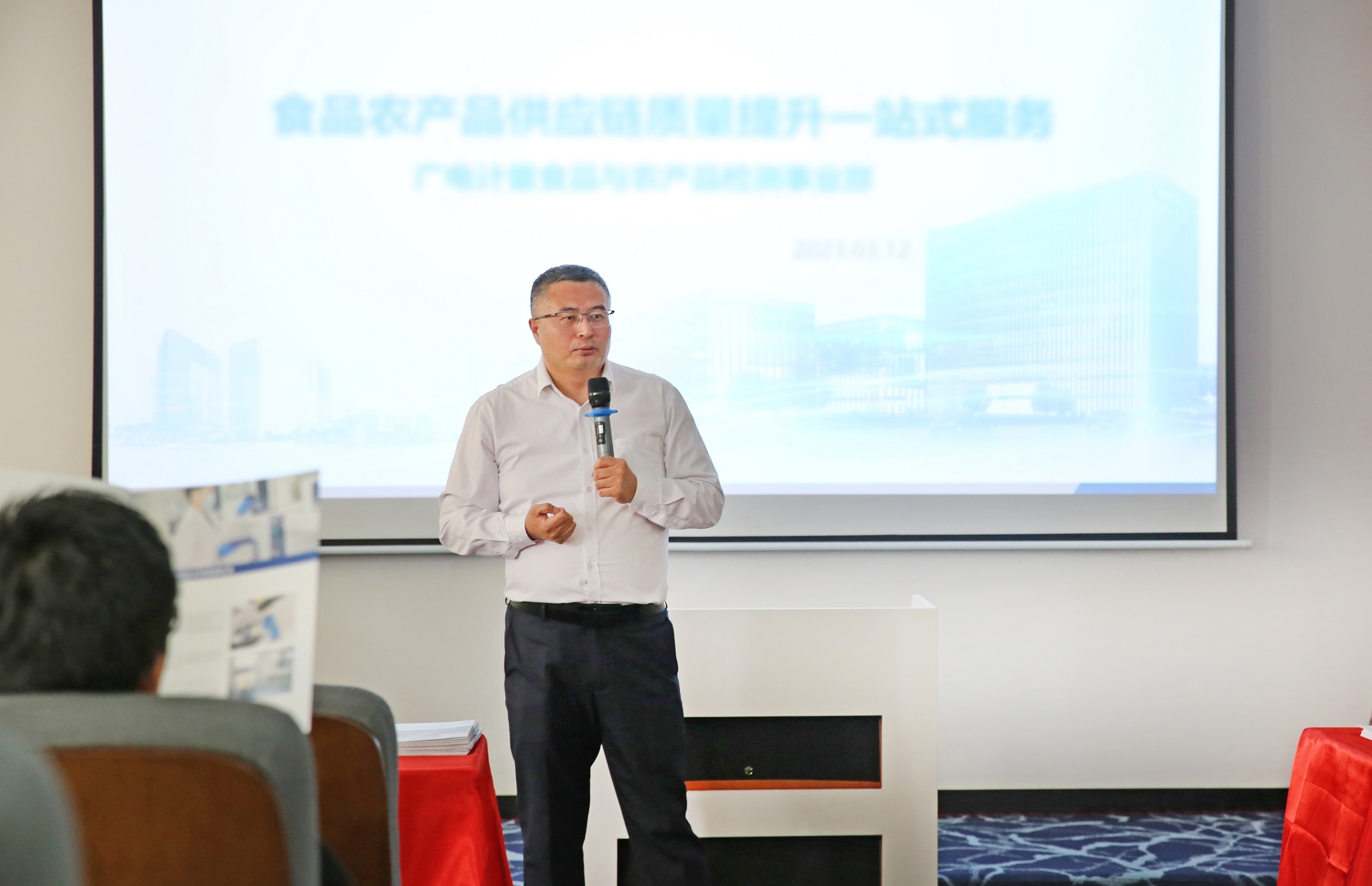廣電計量總經理助理王慶東在致辭中表示,作為一家具有高度責任感的國有上市企業,廣電計量圍繞國計民生布局綜合化業務,持續構建檢驗檢測技術能力。標準化是創新的基石,公司將彰顯國企擔當,發揮檢測機構“質量管家”作用,積極推動預制菜產業標準化、規范化建設。