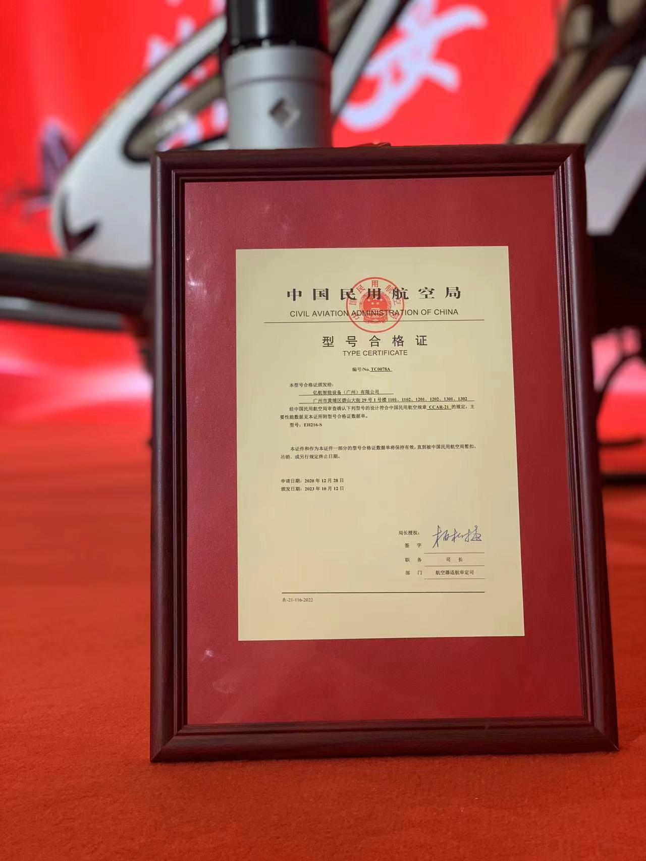 2021年1月,中國民航局正式受理EH216-S的TC申請。經過1000多個日夜,在中國民航局、審查組與億航智能團隊的不懈努力下,EH216-S按合格審定計劃順利走完了試驗類符合性認證、審定試飛等TC取證全過程。EH216-S適航審定的成功經驗為中國乃至全球創新型eVTOL的適航認證樹立了重要標桿,推動了無人駕駛eVTOL適航審定規則、標準和規范的建立,是開啟城市空中交通商業運營的劃時代里程碑。