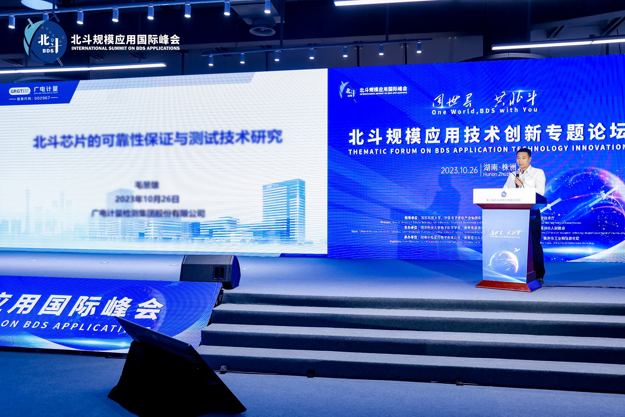 10月26日,第二屆北斗規(guī)模應(yīng)用國(guó)際峰會(huì)在湖南省株洲市舉行。工業(yè)和信息化部黨組書(shū)記、部長(zhǎng)金壯龍出席大會(huì)并致辭。湖南省委書(shū)記沈曉明,省委副書(shū)記、省長(zhǎng)毛偉明出席大會(huì)。廣電計(jì)量受邀參會(huì),集成電路測(cè)試與分析中心副總監(jiān)毛景雄出席專題論壇并作《北斗芯片的可靠性保證與測(cè)試技術(shù)研究》主題報(bào)告。