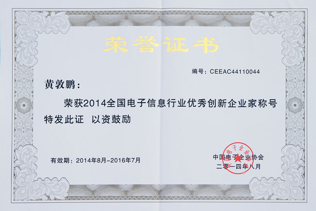 GRGT黃敦鵬總經理榮獲“2014全國電子信息行業優秀創新企業家”稱號