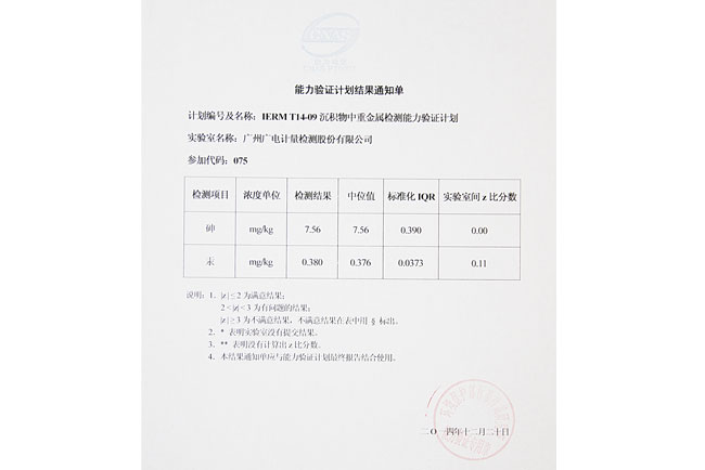沉積物中的重金屬含量直接反映了受污染水系的水質狀況,我國于2002年頒布了《海洋沉積物質量》(GB 18668-2002),該標準按使用功能和環境保護目標將海洋沉積物分類,規定了其中砷、汞等多種重金屬污染物的限值,并提出了相應的分析方法,這在客觀上要求我國相關實驗室應具備檢測沉積物中重金屬的能力。本次能力驗證計劃共有84家實驗室參加,其中66家實驗室檢測結果為滿意。此次通過“沉積物中重金屬”能力驗證,標志著我司化學分析測試中心的土壤重金屬領域檢測能力獲得了國家權威認可,提高了實驗室技術能力,贏得客戶信心和信賴,充分展示了我司綜合實力。