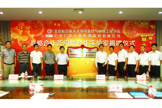 2015年6月18日,廣州廣電計量檢測股份有限公司(以下簡稱:廣電計量)與北京航空航天大學(以下簡稱:北航)在北京舉行“產學研”戰略合作簽約與合作實驗室揭牌儀式。根據協議,雙方將利用各自優勢,在學生實習就業、業務分包、科研開發、捐資助學等方面展開全方位合作,并逐步拓展雙方的合作領域與深度。