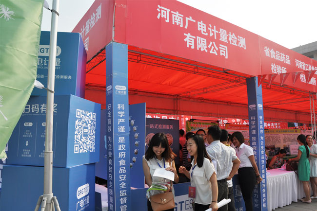 6月13日上午,2016年河南省食品安全周啟動儀式在河南省人民會堂室外廣場隆重舉行,河南省人大、省政府、省政協領導出席,食品安全有關部門、新聞媒體、行業協會、大中型企業等各界代表參會,廣電計量作為食品安全技術支撐單位受邀參與本次活動。當天,主辦方在現場舉辦食品安全宣傳咨詢、成果展示活動,有關食品安全監管部門、相關企業、技術機構等設置咨詢臺和展示點,發放食品安全宣傳資料,接受群眾咨詢。廣電計量現場宣傳咨詢點設在食品安全監管宣傳咨詢活動展區,主要突出食品安全技術支撐方面的展示,吸引眾多領導、食品農產品專家、社會公眾及媒體記者駐足交流。