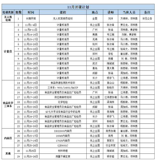 本月培訓(xùn)課程涵蓋計量校準(zhǔn)員類
