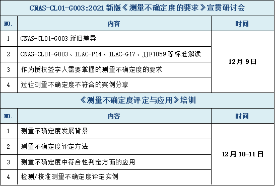 3、僅參加12月9日研討會(huì)的人員,頒發(fā)《CNAS-CL01-G003:2021測(cè)量不確定度》培訓(xùn)證書。