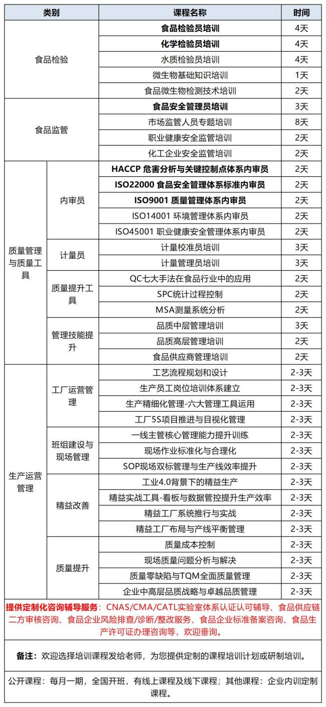 廣電計量食品行業(yè)系列培訓(xùn)課程