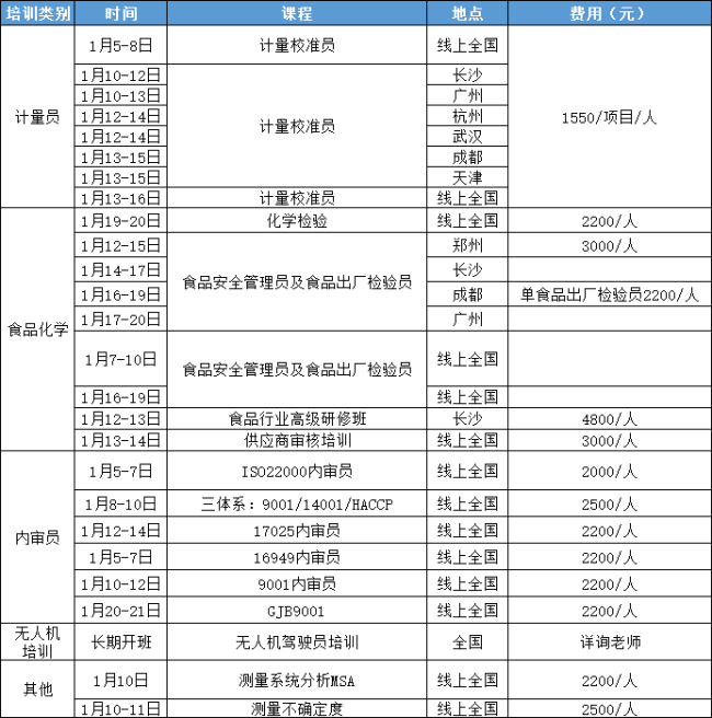 本月培訓課程涵蓋計量校準員類、