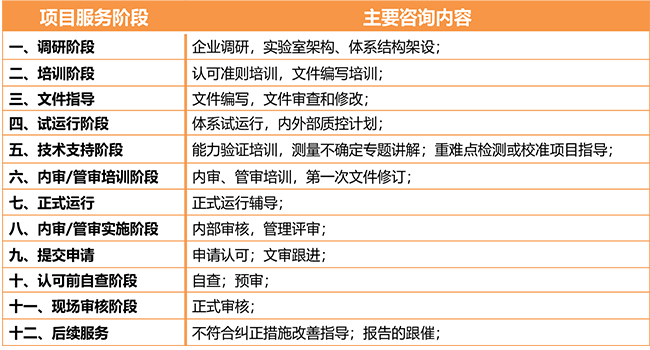 我們重點面向各行業企業、三方檢測機構等自建實驗室,提供全面專業咨詢輔導服務及相關的培訓課程,根據企業所處的行業、項目進度的不同特點,量身定制“專人、專案、專責”的個性化服務,貼合企業客戶需求。具體服務流程如下: