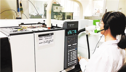 在廣電計(jì)量化學(xué)分析實(shí)驗(yàn)室,氣味評(píng)價(jià)師正利用氣相色譜質(zhì)譜聯(lián)用儀和嗅辨儀對(duì)氣味進(jìn)行分離和嗅辨。 郭靜原攝