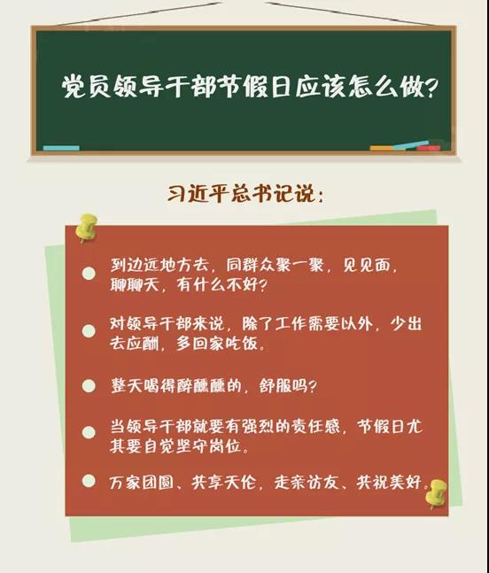 我在地方工作時,逢年過節都得值班,生怕出了什么事。很多地方和部門的負責同志一到節假日就不見了,到外地去休假了。跑到那么遠的地方怎么放得下心?一旦有個什么事怎么辦?當領導干部就要有強烈的責任感,節假日尤其要自覺堅守崗位。沒有說不讓休息,但關鍵是如何休息、在哪兒休息,有沒有考慮到自己肩負的職責。大部分領導干部在這個問題上做得是好的,節假日都能自覺堅守崗位。這不也是一種規矩嗎?