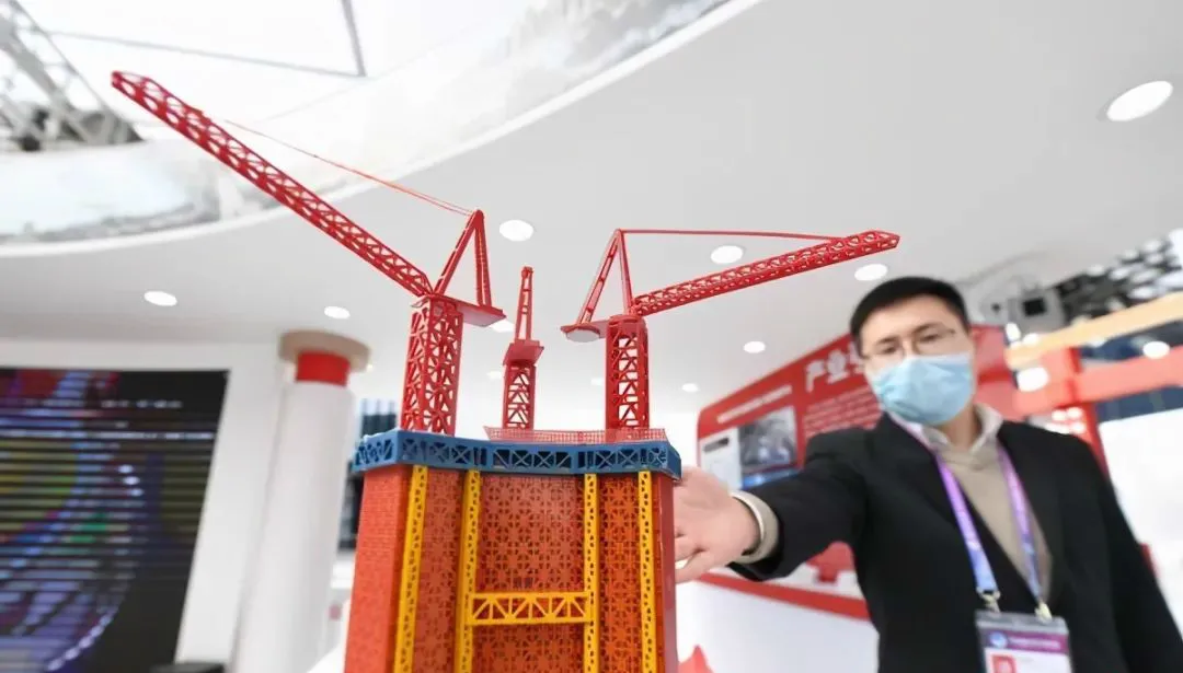△第三屆進(jìn)博會上展出的“空中造樓機”不僅較傳統(tǒng)施工裝備更加安全智能,還可縮短20%的工期。