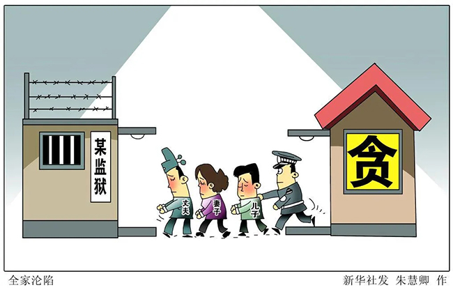 一家人“抱團”貪腐,必然“組團”走向深淵。家事牽國事,家風連政風。領導干部的家風不是個人小事、家庭私事,防止家族式腐敗,須從家風建設入手!