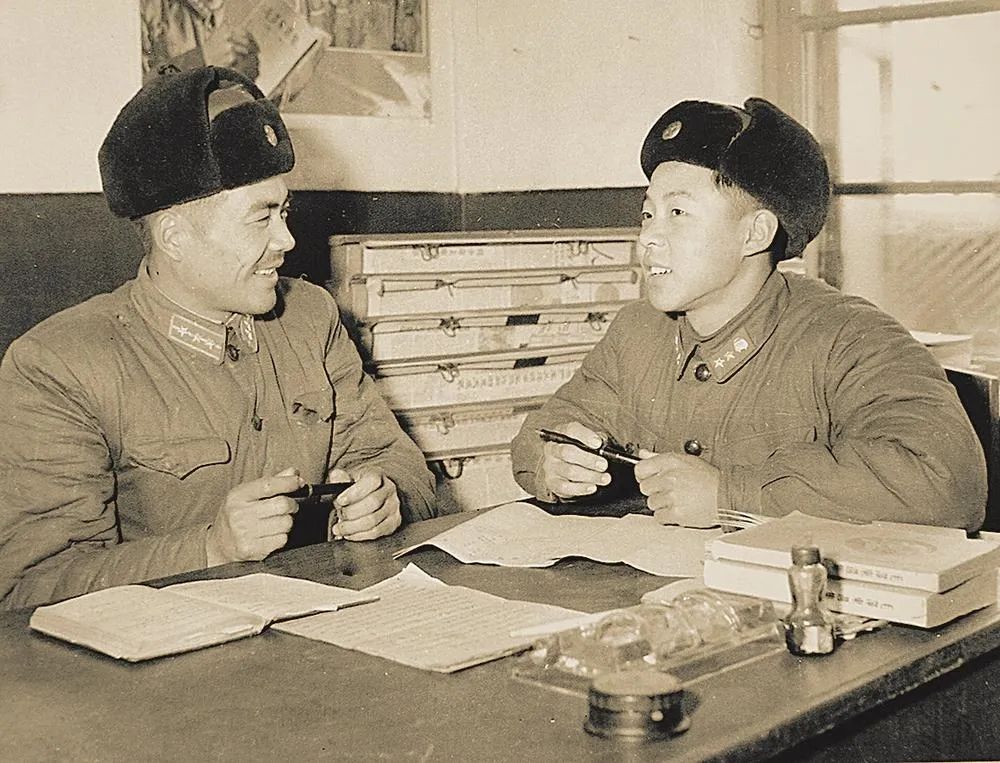 雷鋒入伍后表現(xiàn)突出,得到組織的充分肯定。圖為運(yùn)輸連指導(dǎo)員高士祥與雷鋒談話(張峻 攝)